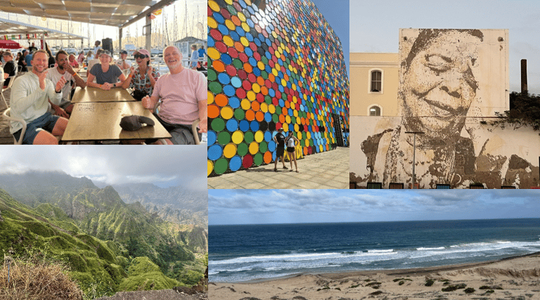 The ARC+ stop over is about 1 week to allow for all yachts time to arrive. Once again, there were tours and events organised by the World Cruising Club. Time was spent sorting out the yacht, including climbing the mast to check the rigging. However, I particularly enjoyed the island tour to nearby island Sao Antao where we were driven up to the spectacular summit through lush green sugar cane and banana plantations. We all also enjoyed sundowners in the Mindelo floating bar!